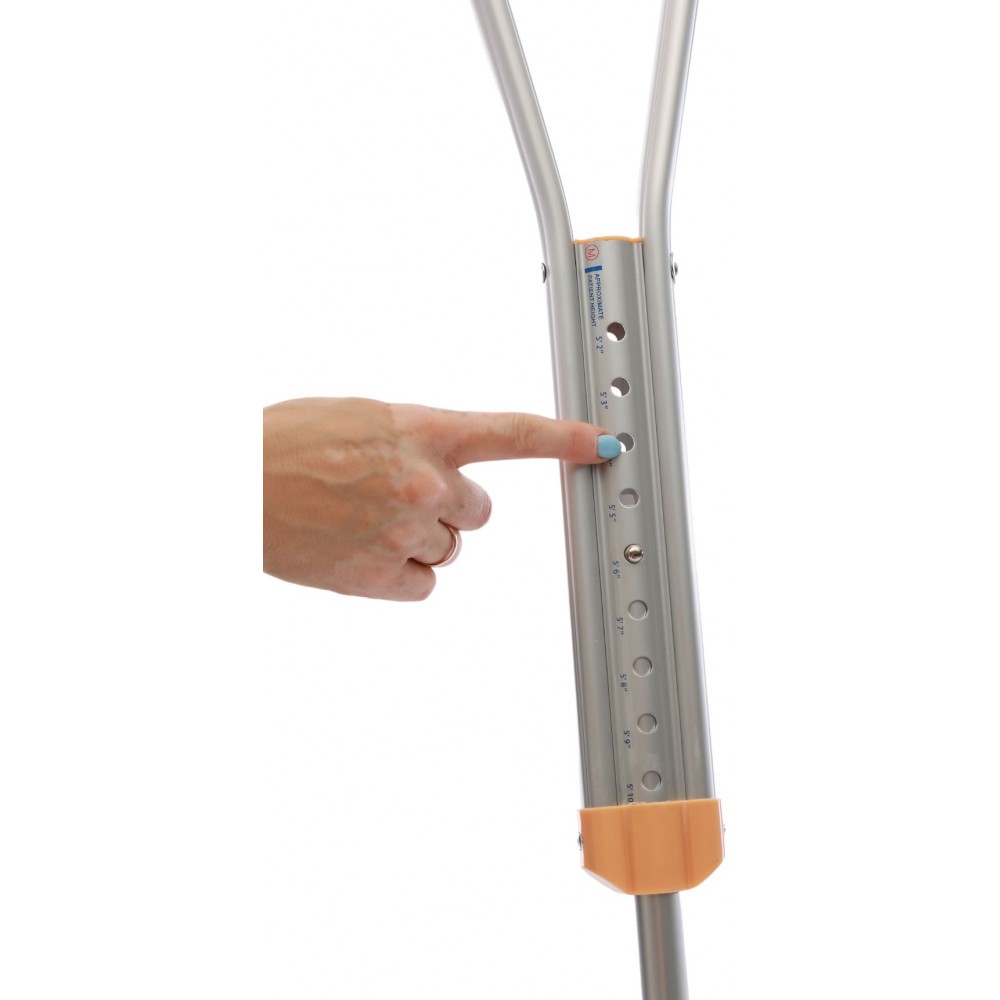 3. Удобство ручки: Длина ручки 10 см обеспечивает надежный захват и удобство использования. Ручка имеет 5 положений регулировки от подмышки (36-52 см), что позволяет пользователю найти наиболее комфортное положение.