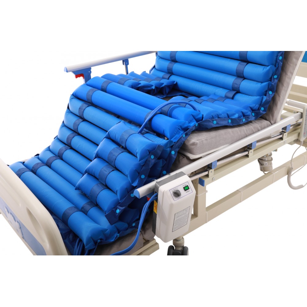 Принцип работы матраса состоит в том, что компрессор подает беспрерывно воздух в полотно, поочередно накачивая секции, чем создается ощущение легкого массажа. Отверстие в матрасе, предусмотрено для использования в тандеме с функциональной кроватью с санитарным устройством. Для использования с медицинскими кроватями, у которых ножная секция не только поднимается, а и опускается, предусмотрена подвижная часть матраса, которая даст возможность полноценно использовать все положення кровати.