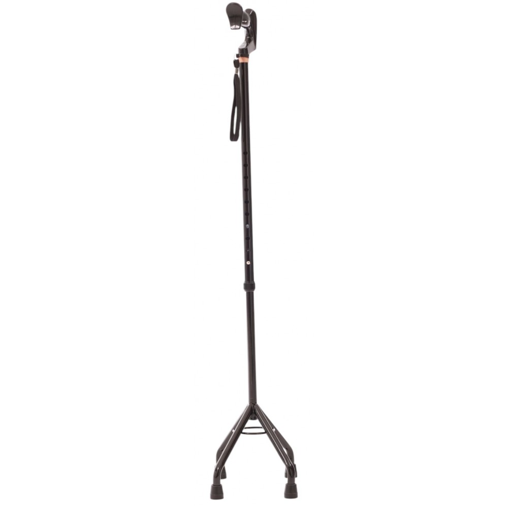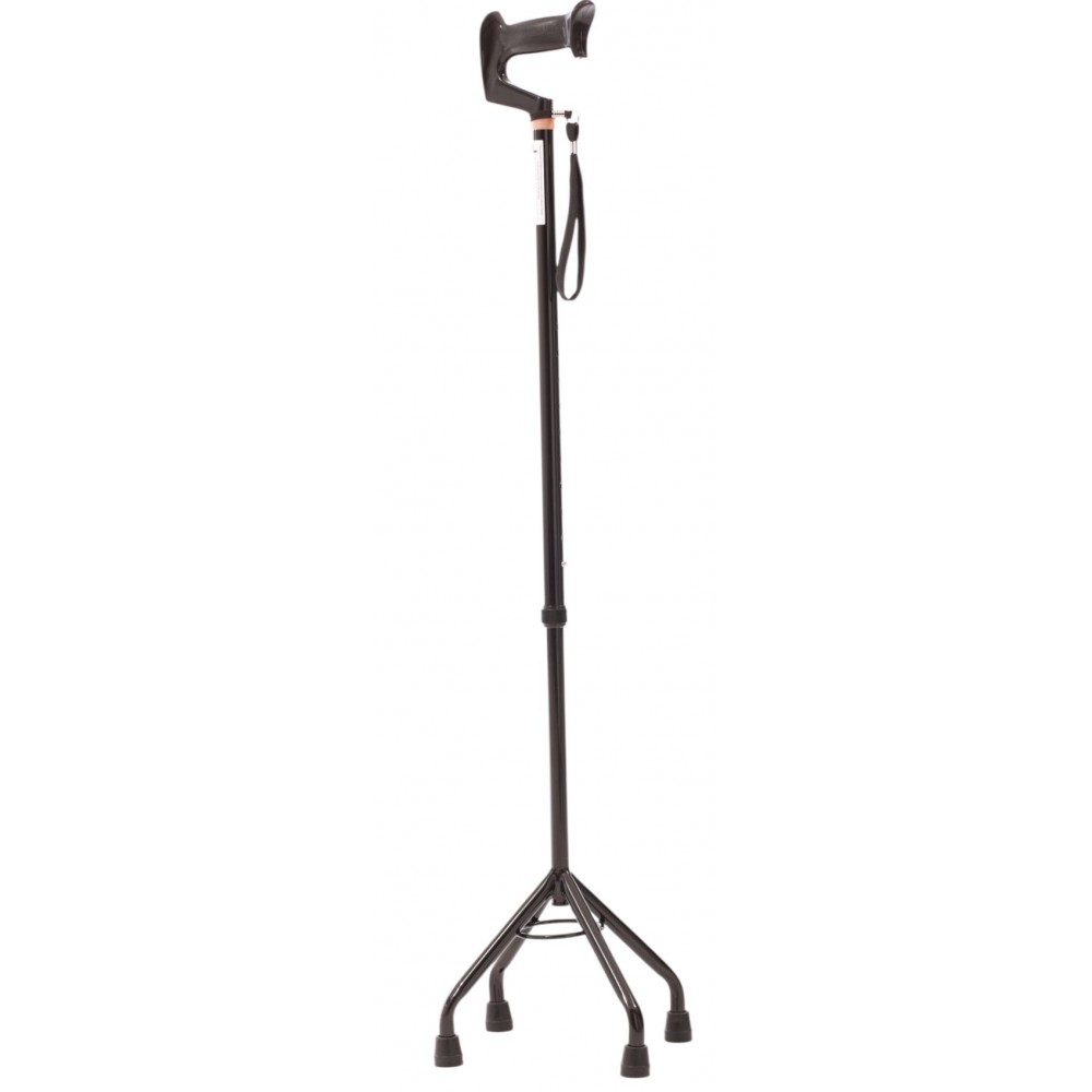 Посилене чотирьохопорне основання: Унікальна розширена платформа з чотирма вигнутими ніжками забезпечує виняткову стійкість навіть на нерівних поверхнях. Конструкція запобігає перекиданню, а завдяки широкому куту опори тростина стоїть вертикально навіть без підтримки.